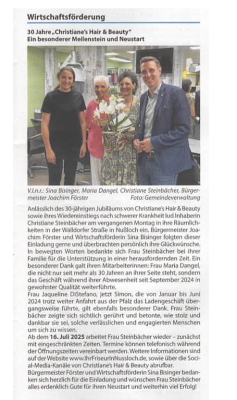 Christianes Hair & Beauty Walldorfer Str. 64 69226 Nußloch